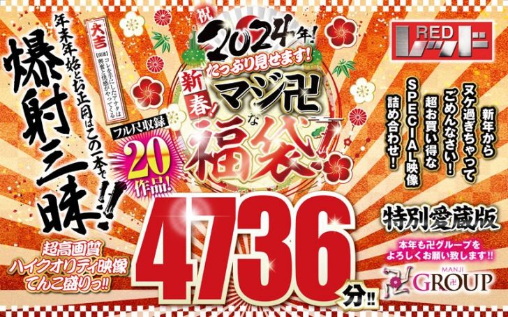 2024年新年からヌケ過ぎちゃってごめんなさい!卍GROUPから大人気メーカー、レッドの超厳選20タイトル!4736分の大!大!大!超特大ボリュームでお届け!!ほぼ79時間のてんこ盛りのスペシャルお年玉卍福袋!この機会をお見逃しなく!2024年も卍GROUPを宜しくお願い致します!